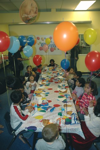 Gettin the party room ready.